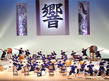 校区にある吾妻子の滝にまつわる伝説や地域の歴史について調べたり、地域の方から盆踊りを学んだりして、和太鼓等で表現しています。